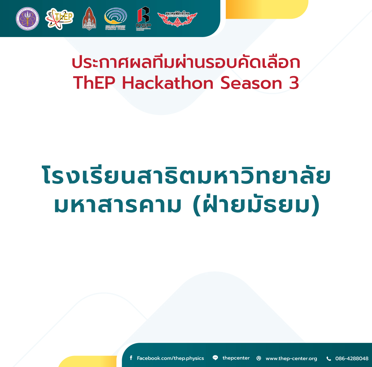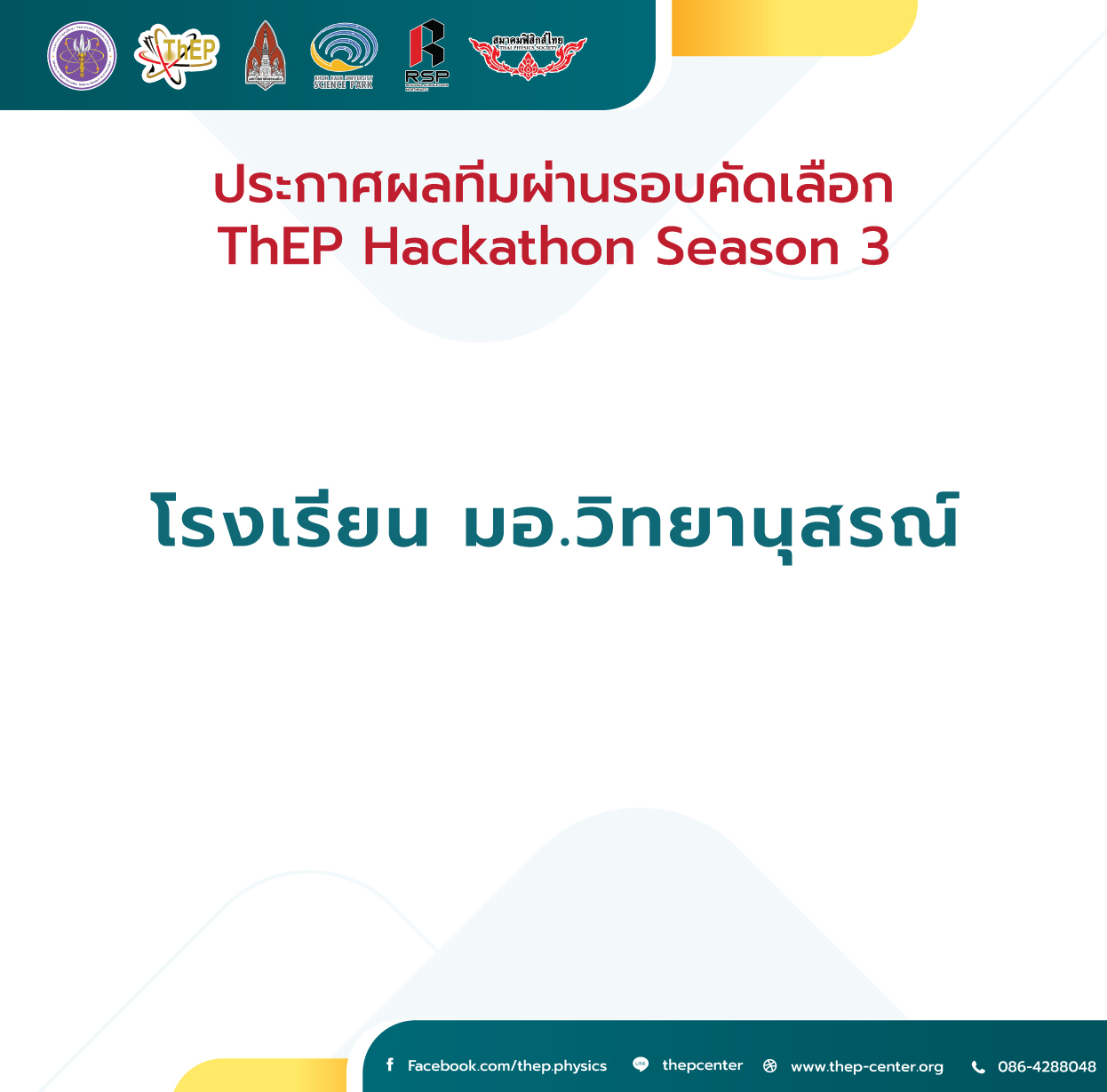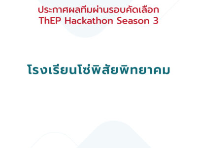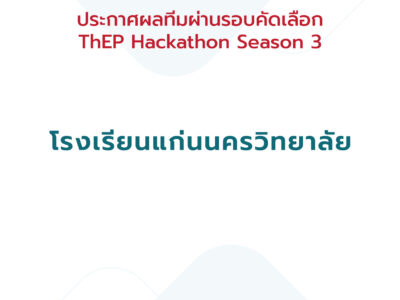 ประกาศผลทีมที่ได้ผ่านการคัดเลือก โครงการแข่งขัน ThEP Hackathon Season 3 ดังนี้