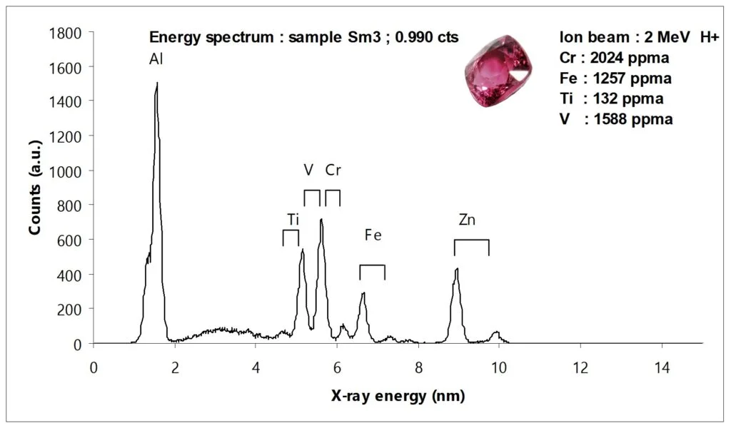 ตัวอย่างการจำแนกธาตุองค์ประกอบของทับทิมและสปิเนลที่มีสีภายนอกคล้ายกัน