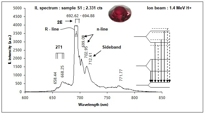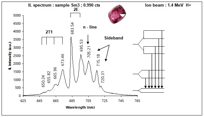 ตัวอย่างการจำแนกสเปกตรัมการเรืองแสงของทับทิมและสปิเนลที่มีสีภายนอกคล้ายกัน
