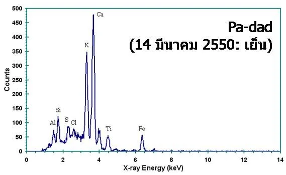 ฝุ่นในตำบลป่าแดดมีแคลเซียม (Ca) สูง ซึ่งบ่งบอกถึงแหล่งที่มาจากการก่อสร้าง