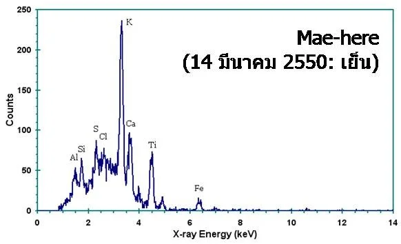 ฝุ่นในตำบลแม่เหียะมีโพแทสเซียม (K) สูง ซึ่งบ่งบอกถึงแหล่งที่มาจากการเผาพืชต่าง ๆ