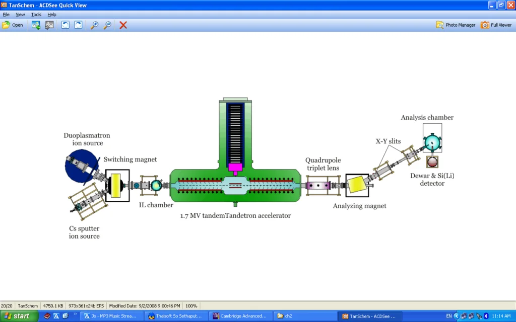 แผนภาพจำลองเครื่องเร่งอนุภาค 1.7 MV Tandetron