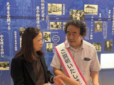 คณะฯ ได้เดินทางไปยัง ศูนย์นิชินะฯ ซึ่งเป็นหน่วยงานภายใต้สถาบัน RIKEN (ญี่ปุ่น) ศูนย์กลางการวิจัยระดับโลกที่ใช้เครื่องเร่งอนุภาคเพื่อศึกษาวิจัยพื้นฐานของสสาร การกำเนิดของธาตุ และความเป็นไปได้ในการแปรรูปธาตุ (Element Transmutation) การเยี่ยมชมครั้งนี้ได้รับเกียรติจาก Dr. Isao Watanabe นักวิทยาศาสตร์วิจัยอาวุโส สถาบันวิจัย RIKEN นำชมการดำเนินงานของโรงงานผลิตลำไอโซโทปรังสี (RI Beam Factory หรือ RIBF) ซึ่งเป็นเครื่องเร่งอนุภาคเพื่อการวิจัยทางนิวเคลียร์ โดยผสมผสานเทคโนโลยีเครื่องเร่งไอออนหนักที่มีอยู่เดิมกับชุดเครื่องเร่งพลังงานสูงรุ่นใหม่ล่าสุด เป้าหมายคือการผลิต “ลำแสงไอออนหนัก” ที่มีความเข้มสูงที่สุดในโลก และ “ลำแสงไอโซโทปรังสี (RI beams)” ที่มีพลังงานสูง ด้วยการใช้ชุดเครื่องเร่งใหม่ (SRC) ร่วมกับเครื่องคัดแยก BigRIPS ทำให้ RIBF สามารถสร้างลำแสงพลังงานสูงเพื่อขยายขอบเขตการวิจัยนิวเคลียร์และค้นพบไอโซโทปใหม่ ๆ ในแผนภูมินิวเคลียร์
